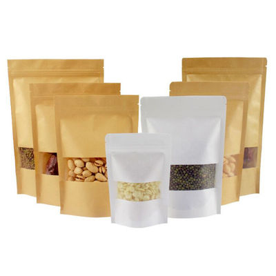 زپ دوباره قابل بسته بندی و پنجره شفاف بسته بندی قابل ایستادن کیسه های کاغذ قدرت طبیعی ایستادن