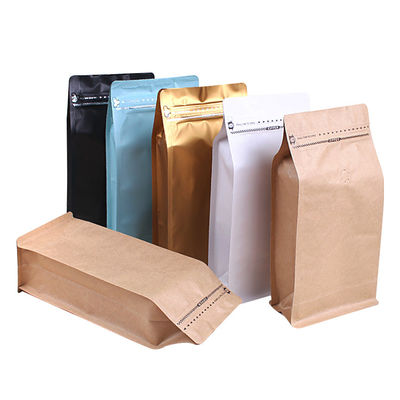 بسته بندی جانبی مهر و موم پشتی چهار طرف مهر و موم ورق پوشیده کف تخت کیسه های قهوه 0.5lb 1lb 2lb سفید سیاه با دریچه degassing